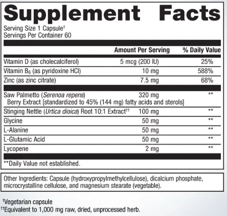 • Proven Synergistic Effect: A specific combination of nutrients that work together to optimize the internal cellular activity of the prostate.